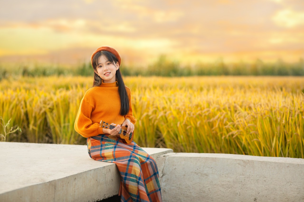 走在丰收里的女孩