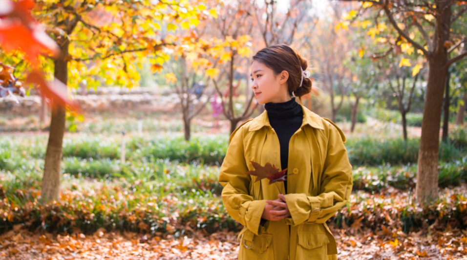 风衣配枫叶,怎么拍都好看!