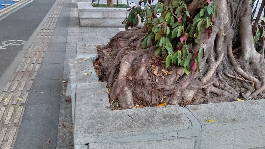 树干挡道围栏多余?官方:可保护树木,消除隐患