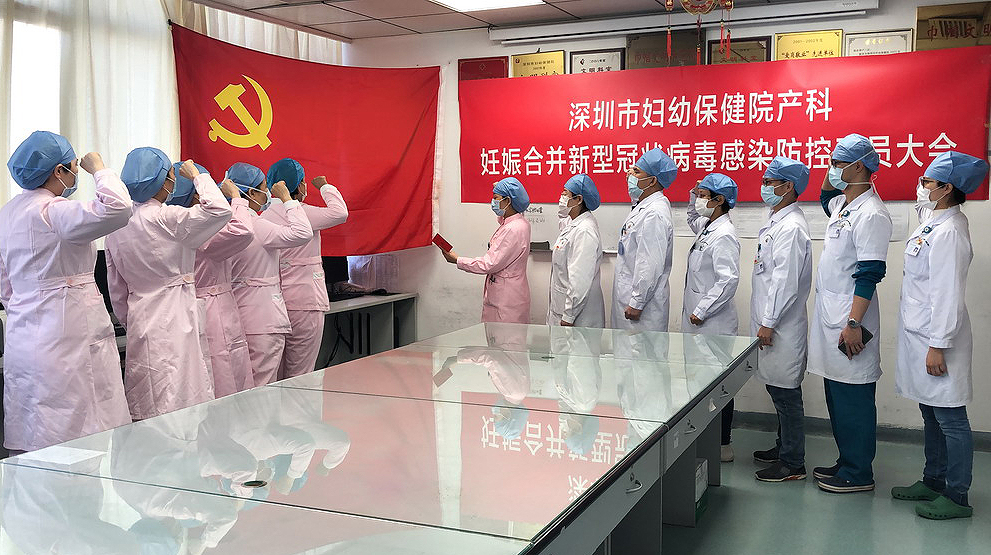 产科党员在新成立的病区重温入党誓词