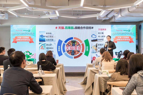 见圳客户端·深圳新闻网2019年11月30日讯 11月29日,天猫与百果园在深圳阿里中心举行战略合作发布会,天猫大食品总经理无龄、大食品果蔬冰运营负责人思豪,百果园集团副总裁焦岳、电商负责人孙鹏出席会议并发表演讲。本次发布会以“共创水果生鲜好生活”为主题,双方计划通过优势互补和资源整合,从水果到生鲜进行全面深入的战略合作。