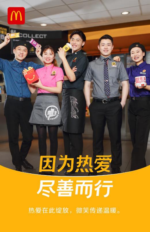 麦当劳于1990年进入中国内地,从深圳第一家餐厅发展到今天的3,500多家餐厅,陪伴一代又一代顾客度过欢乐时光。麦当劳中国首席执行官张家茵表示:“三十周年之际,麦当劳发布‘因为热爱,尽善而行’品牌理念,勉励我们坚守初心,用热爱创造更多可能,用善意带来更多美好。我们在中国内地取得的成绩,离不开员工、供应商和被特许人的携手努力。‘热爱’始终流淌在我们每个人的血液里,专注为顾客打造尽善尽美的用餐体验;而‘善’一直指引着我们的发展方向——我们用严苛的标准对待每一份餐食,为顾客提供新鲜安心的美味;我们运营绿色餐厅、优化绿色包装,通过一系列绿色行动让麦当劳成为‘美丽中国’的一部分,让金色拱门更加闪闪发亮。”