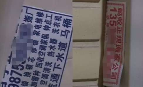 搬家、疏通下水道、空调维修,等等的广告种类繁多。而且这贴广告的人,是真舍得用胶水,一旦小广告上了墙和门,你不花个大力气,根本搞不定它。