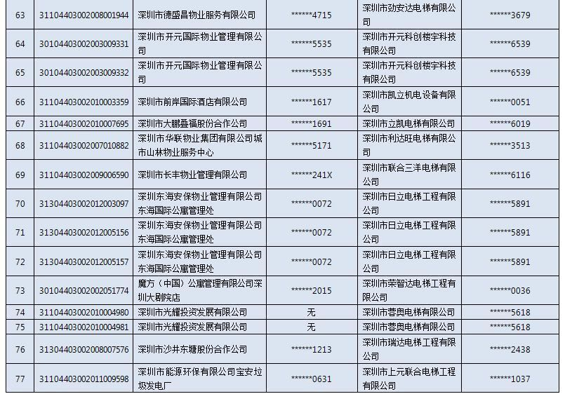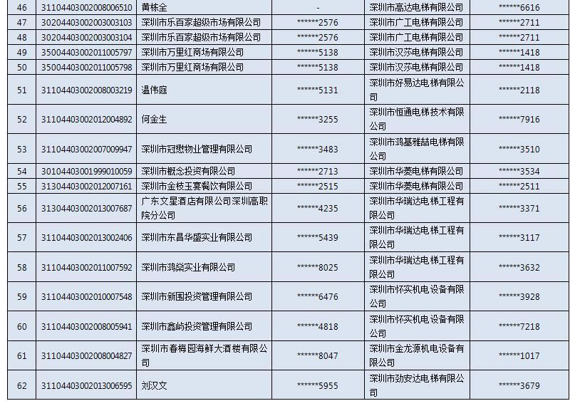 以下是电梯扶梯抽检不合格“黑名单”