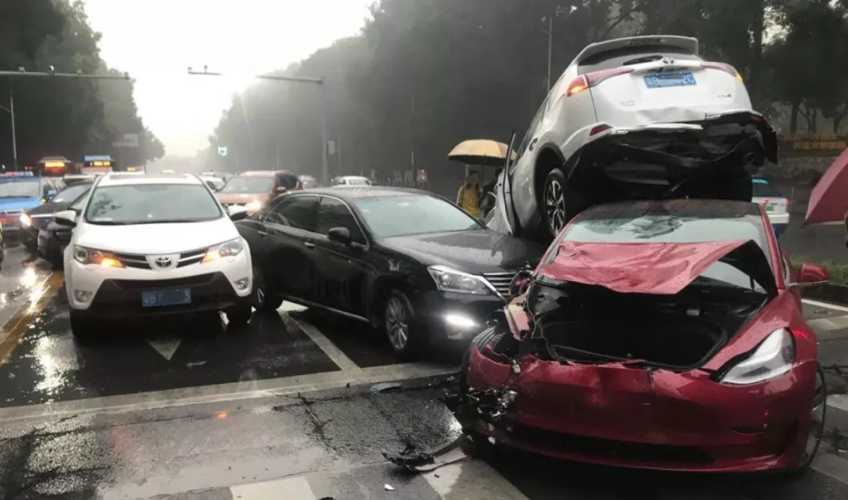 造句:“新手”司机试驾豪车,油门当刹车酿车祸,是个狼人!