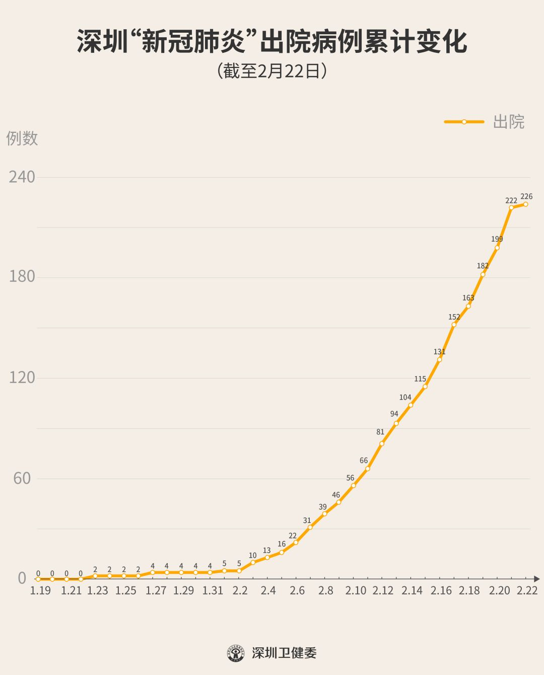 2月22日下午,经专家组会诊,深圳再有4名新型冠状病毒肺炎确诊患者出院,累计达226人,连续20天有人出院。