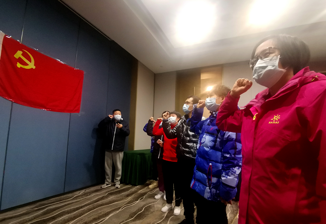 见圳客户端·深圳新闻网2020年3月9日讯 3月9日晚7时30分,广东省支援荆州医疗队组织新党员入党宣誓活动。深圳边检总站医疗队和北大深圳医院医疗队分别在荆州市第一人民医院分会场和监利县广东医疗队驻地酒店分会场组织党员参加了宣誓活动。经广东省支援荆州医疗队临时党委批准,来自深圳边检总站医院医疗队的护士许梅与来自北大深圳医院的护士曹慧敏、赵晨曦作为新党员火线入党。