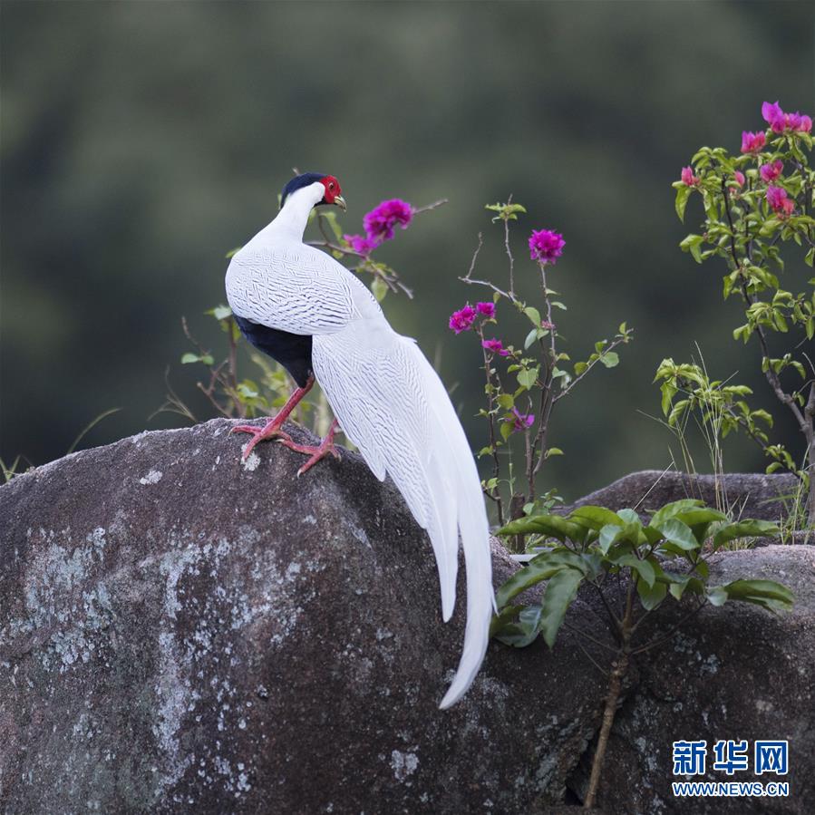 9月27日,在南靖县鹅仙洞自然保护区内,一只白鹇在山石上停留。 新华社记者 梅永存 摄