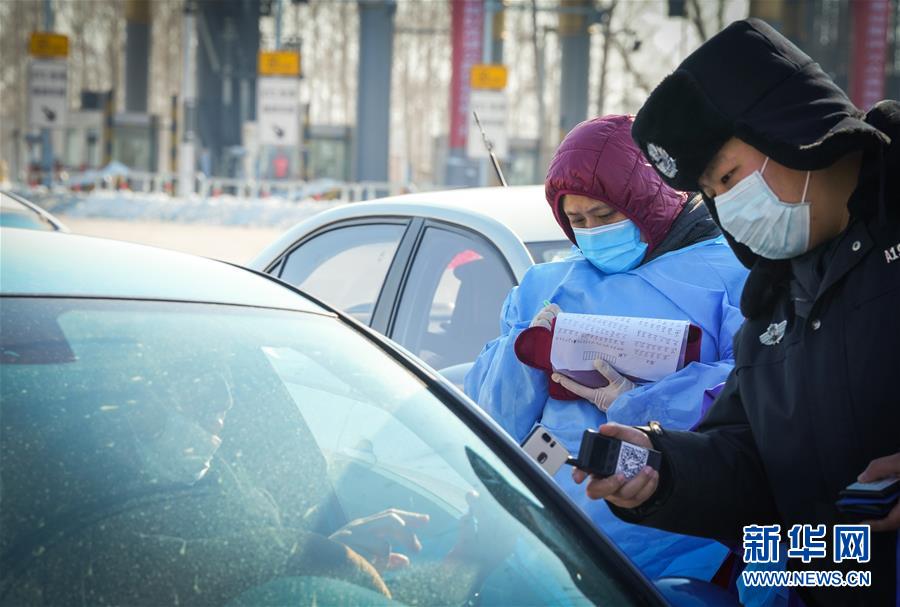 2月24日,工作人员在哈同高速公路哈尔滨收费站为车辆人员登记。 新华社记者 王松 摄