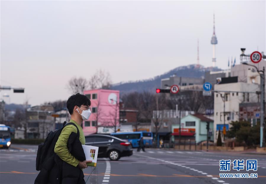 2月24日,在韩国首尔,一名男子行走在龙山区的道路上。 新华社记者 王婧嫱 摄
