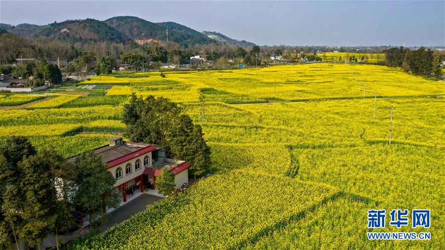 2月24日在四川省大邑县安仁镇永兴村拍摄的油菜花田(无人机照片)。 新华社记者 王曦 摄