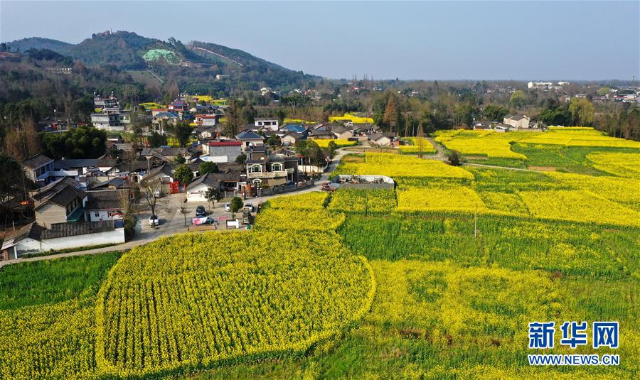 2月25日在四川省崇州市拍摄的油菜花田(无人机照片)。  新华社记者 王曦 摄