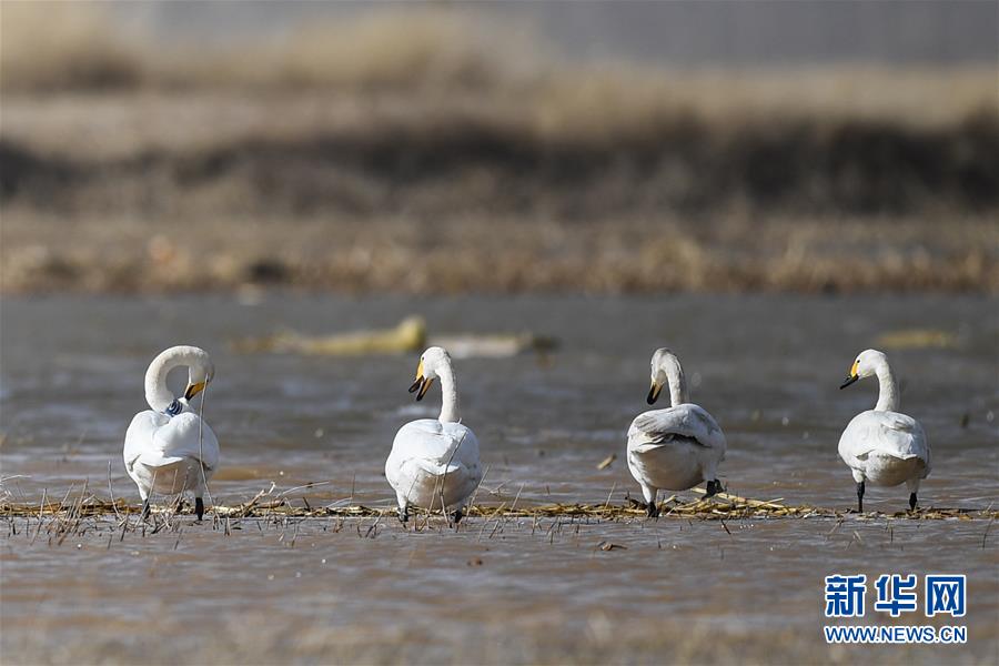 这是3月18日在准格尔旗大路镇的黄河浅滩上拍摄的候鸟。 新华社记者 于嘉 摄