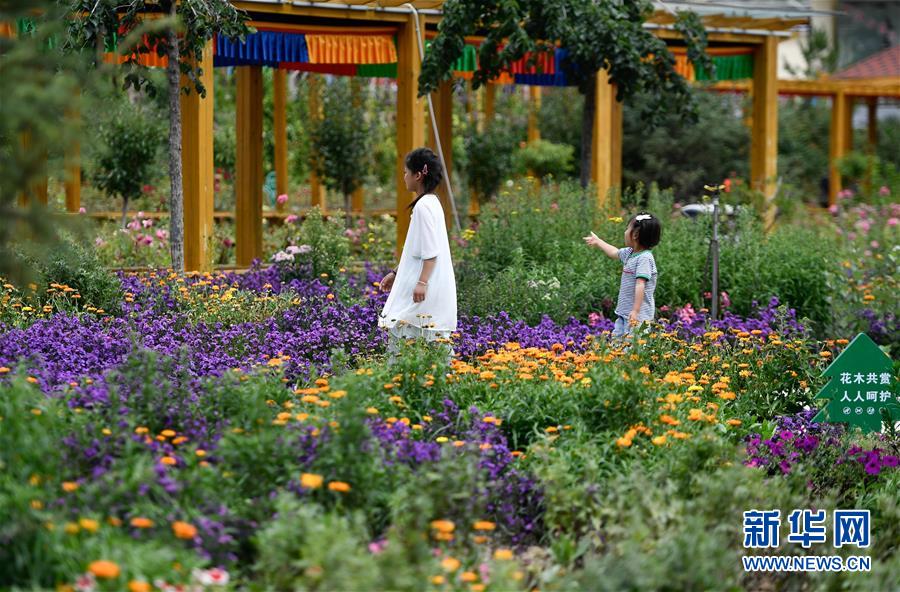8月11日,小朋友在尖扎县昂拉乡德吉村花海景区内游玩。新华社记者张龙摄
