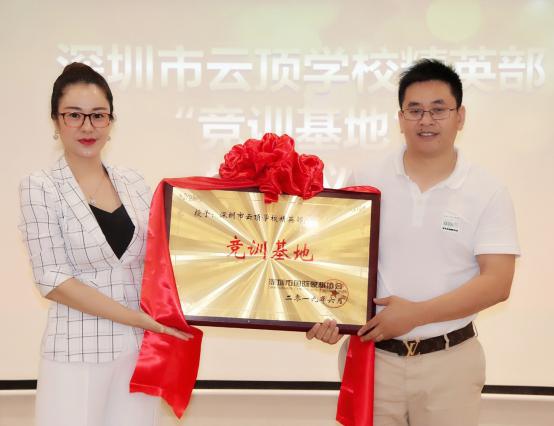 仪式现场,云顶学校精英部唐勇校长和叶美娜会长为“竞训基地”揭牌,家族梦教育邢朝云院长和叶美娜会长为“家长联谊会”揭牌。