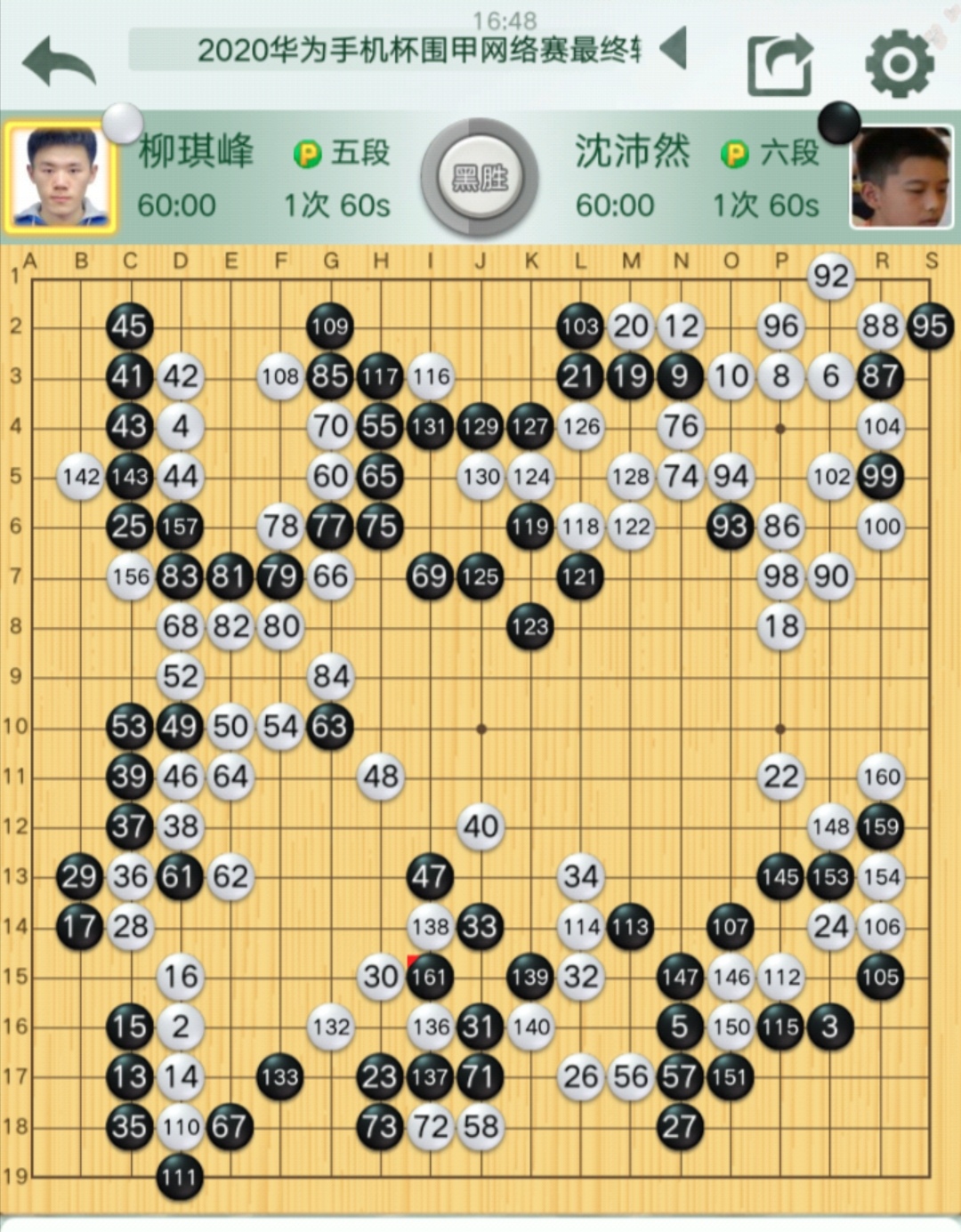2020年“华为手机杯”围甲联赛网络热身赛七轮过后,还有一个AB两组前两名之间的同名次的决定赛。地点依然是腾讯野狐围棋平台,时间是3月19日。